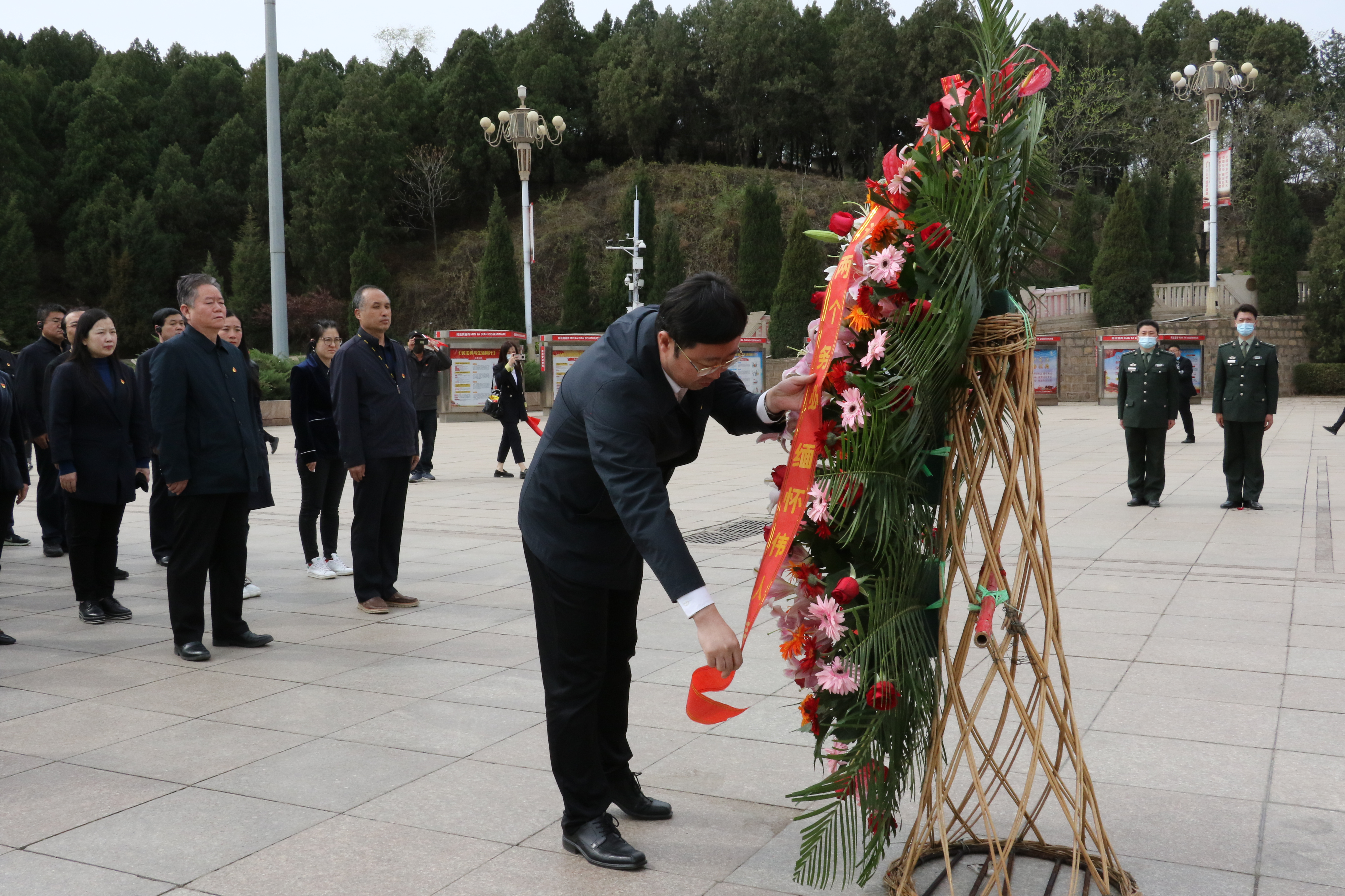 全体党员干部怀着无比敬仰的心情,表达对革命先烈无限敬仰和深切缅怀,集体向五大书记雕像敬献花篮。