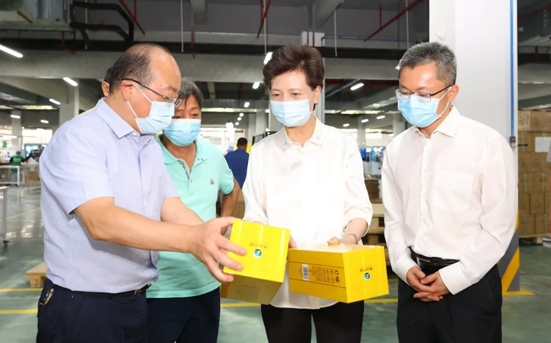 谌贻琴在龙里县永吉盛珑高端纸制品彩盒生产项目现场考察。
